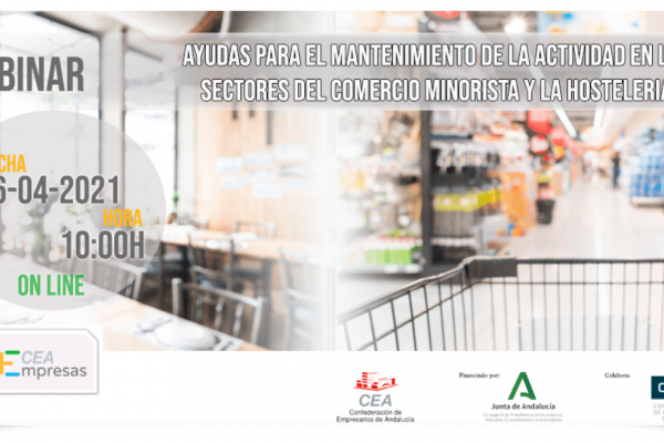 Desde la Confederación de Empresarios de Málaga, en el marco del Programa CEA+Empresas, vamos a celebrar un webinar informativo de título: «Ayudas para el mantenimiento de la actividad en los sectores del comercio minorista y la hostelería«, dirigido tanto a empresarios como a trabajadores autónomos. Este webinar se impartirá el próximo viernes 16 de abril a partir de las 10:00 horas. Contaremos con la presencia del Secretario General de la Consejería de Transformación Económica, Industria, […]