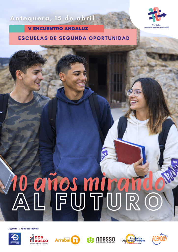 El Torcal de Antequera acogerá el próximo 15 de abril el V Encuentro Andaluz de Escuelas de Segunda Oportunidad (E2O) que con el lema#10AñosMirandoAlFuturo reunirá a más de 70 jóvenes, dinamizadores y educadores de las nueve escuelas acreditadas existentes en la comunidad autónoma vinculadas a las tres entidades organizadoras: Fundación Don Bosco, Noesso y Asociación Arrabal-AID así como una representación de otras dos entidades colaboradoras a nivel educativo, la Asociación Cívica para la Prevención y Alendoy.Se trata de una acción en el marco del Mes de las Escuelas de Segunda Oportunidad para ahondar en aspectos clave de este modelo de intervención como el acompañamiento, el bienestar emocional y el apoyo para la identificación de objetivos profesionales; un evento concebido como un paso previo al X Encuentro Nacional de Escuelas de Segunda Oportunidad que organiza la Asociación Española de Escuelas de Segunda Oportunidad (E2O) el próximo 28 de abril en Pamplona (Navarra) con participación de administraciones públicas, entidades sociales, educativas y universidades junto a profesionales del mundo educativo y empresas. El reto compartido es reflexionar sobre las soluciones contra el abandono escolar temprano y el desempleo juvenil y valorar los #10AñosMirandoAlFuturo que suma ya el modelo de Segunda Oportunidad en España.