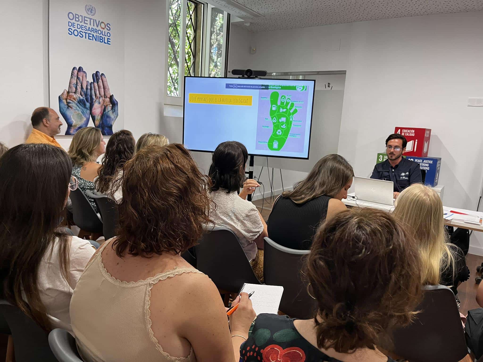Al acto acudieron profesionales de diferentes entidades sociales, que desarrollan programas para la ciudadanía a nivel nacional e internacional, quienes tuvieron la oportunidad de calcular la huella de carbono que genera cada persona con sus hábitos de consumo diario, la importancia del consumo de alimentos de temporada, los materiales de conservación y sus diferentes formas de reciclaje, entre otros temas a través de workshops y dinámicas grupales donde las personas debatían y ponían a prueba sus conocimiento de vital importancia en la agenda 2030.